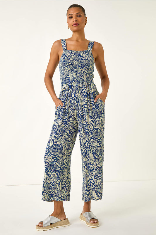 Paisley Print Cropped Jumpsuit